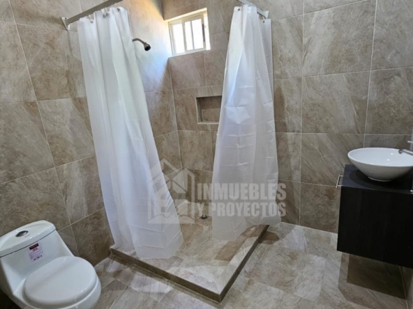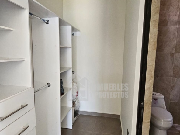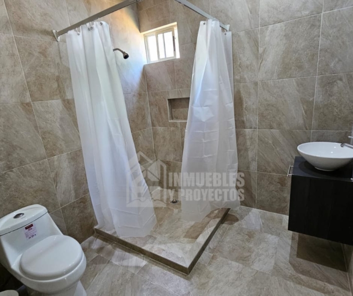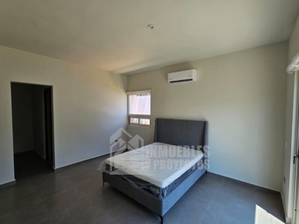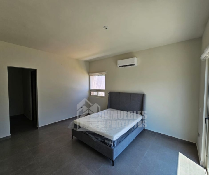 -Recámara interior con baño vestidor, Cama tamaño Queen con respaldo, base, colchón (nuevos) y minisplit.